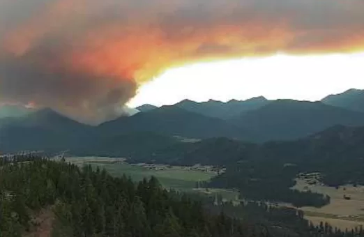 Shelly fire incident in relationship to the Salmon, Scott, and Shasta watersheds and population centers. Also visible is the current Boise fire near Orleans in the lower left.