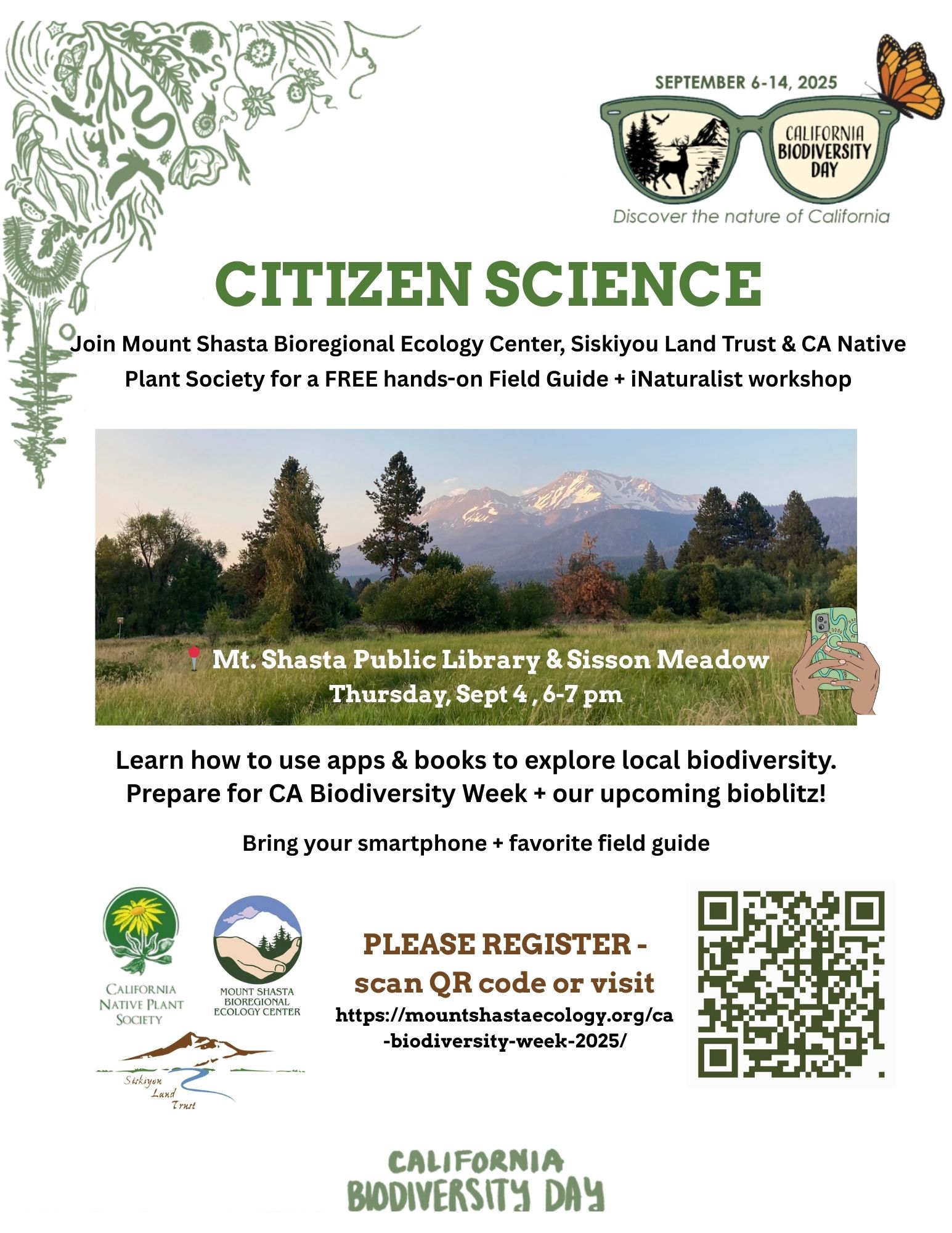 Register here: https://mountshastaecology.org/ca-biodiversity-week-2025